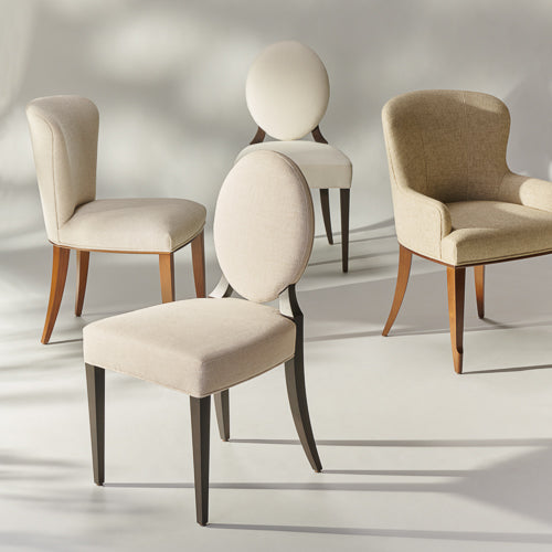 Introducing the BBOS2 Chair – the Barbara Barry Oval Side Chair 2.0. Barbara Barry is synonymous with the oval. Originally designed in the early aughts, this chair quickly became a bestselling side chair in the Barbara Barry collection. Reimagined 20 years later with a thinner elegant seat resting on perfectly scaled legs, this chair can be used as a dining chair, a side chair in a living room or a vanity chair in a lady’s bedroom. Quietly elegant, the BBOS2 is the new classic.