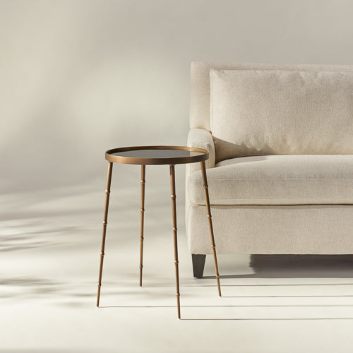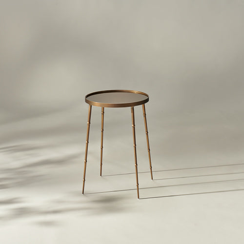 Introducing the Coco Accent Table in Antique Brass, a versatile addition to any space. With its compact 38 cm diameter, this table serves as a stylish side table, a convenient drinks table or even a charming bedside companion.