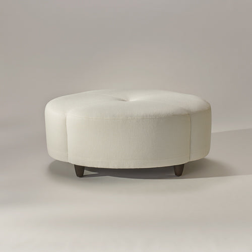 The Opal Ottoman is a distinctive design that embodies the signature style of Barbara Barry. Its scalloped oval silhouette showcases her unique design sensibility, effortlessly combining casual elegance with versatility.